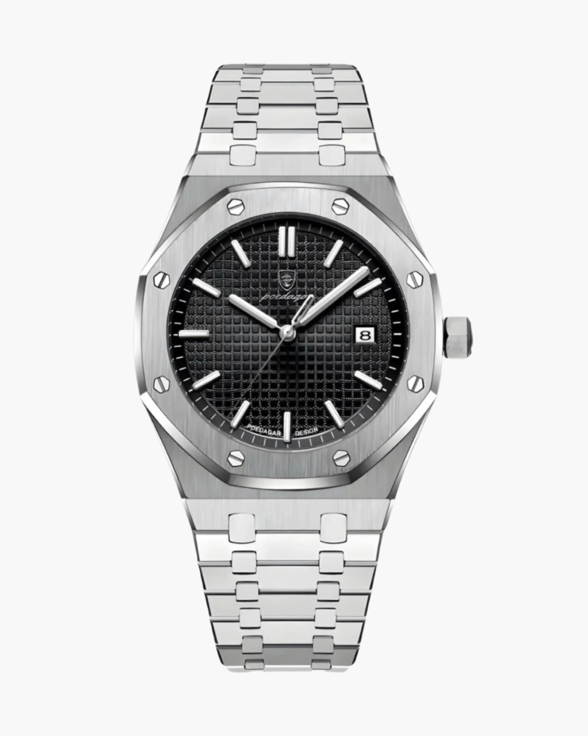 Engineered for everyday reliability and refined style, the Royale Hex 41 mm pairs multifunction quartz precision with a sleek, modern aesthetic. The adjustable bracelet and durable materials make it equally suited to daily wear or elevated occasions.